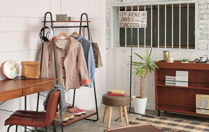インテリア コレクション anthem Hanger Rack アンセム ハンガーラック anthem Hanger Rack ウォールナット仕上げのシェルフとアイアンのフレームが相性◎バックや帽子などを飾ったりできるようにシェルフが付いた機能性も抜群のハンガーラックです。